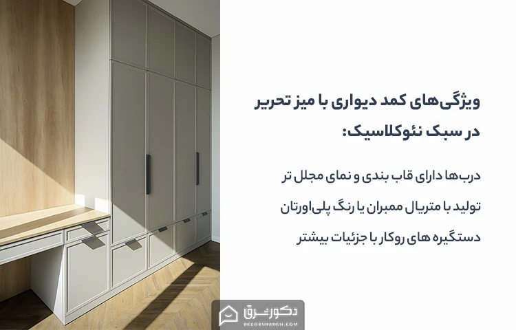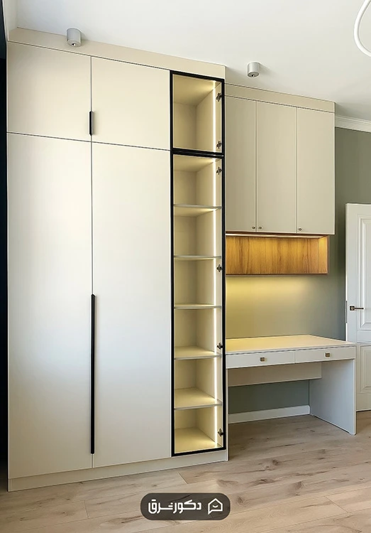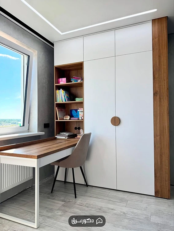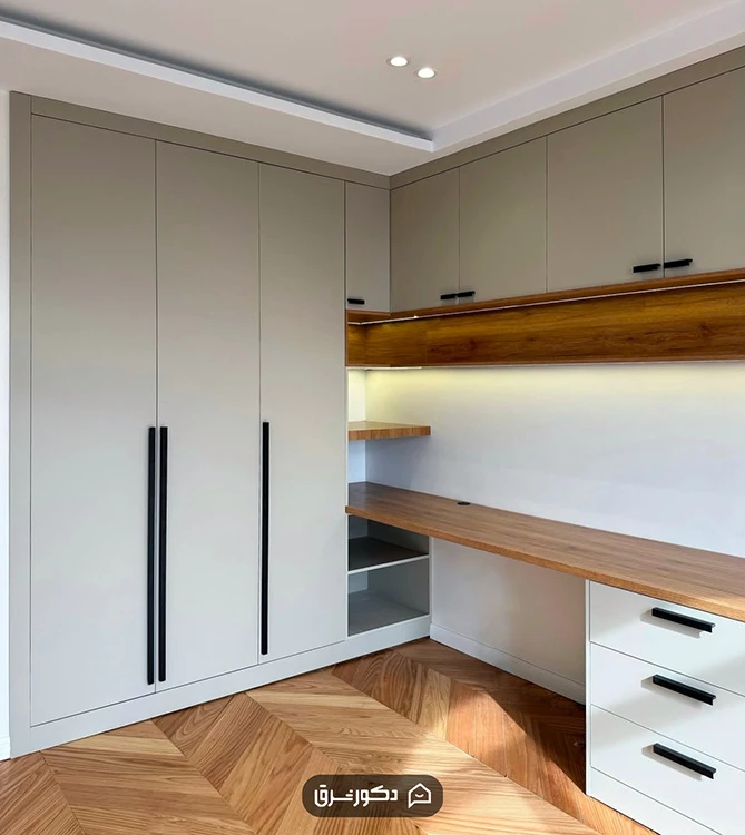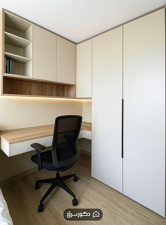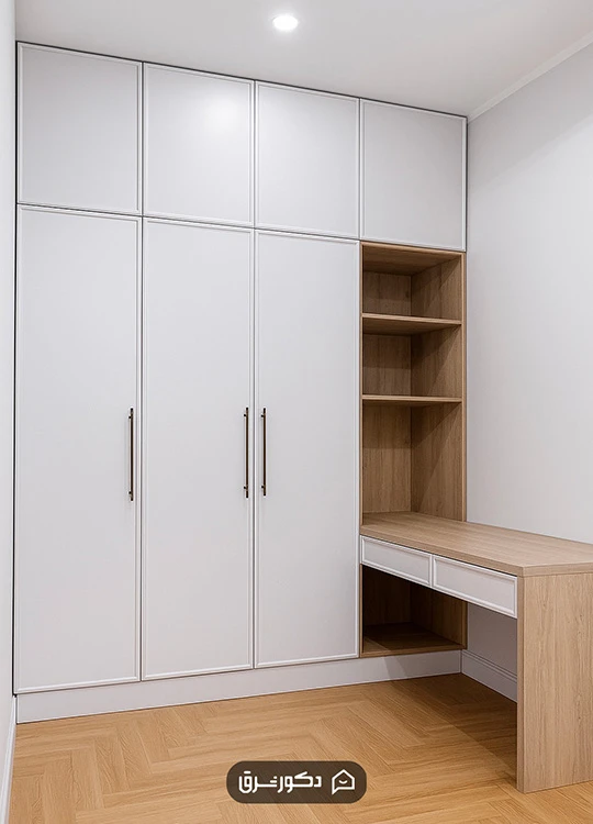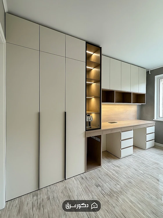 ترکیب کمد دیواری با میز تحریر، یکی از مدل های کاربردی برای استفاده بهینه از فضاست که برای اتاق خواب، اتاق کار و آپارتمان های کوچک و کم جا گزینه مناسبی به شمار می آید.