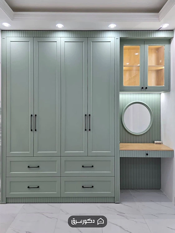 ارتفاع کمد معمولا تا سقف در نظر گرفته می شود و عرض آن به فضای مورد نظر بستگی دارد.