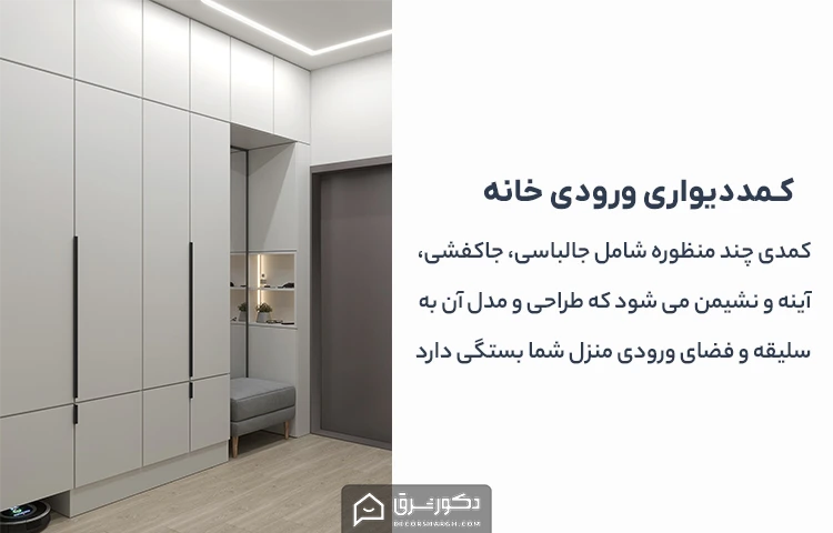 کمد دیواری ورودی خانه، یک کمد چند منظوره برای نظم دهی وسایل روزمره، کفش ها، لباس های بیرونی مهمان ها و ساکنین منزل است.