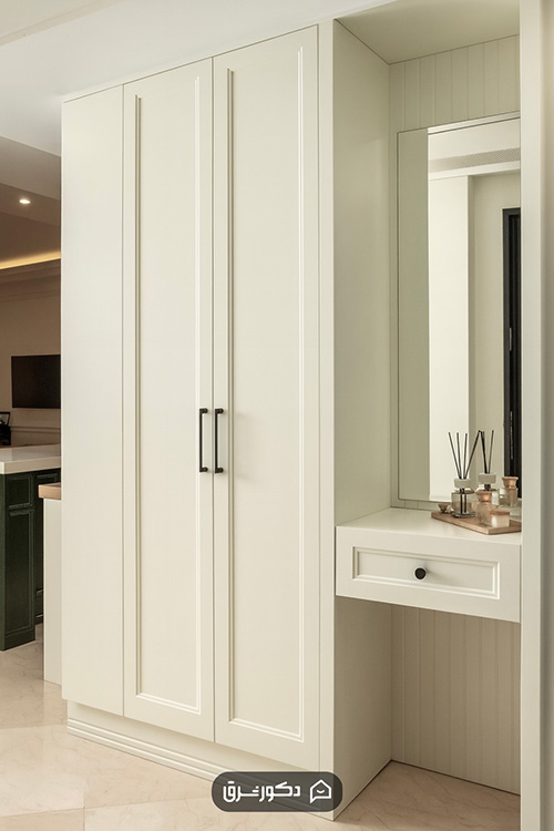 همچنین در منازلی که فضای اتاق خواب ها محدود است و امکان اجرای کمد دیواری وجود ندارد، می توان کمد ورودی را با عمق بیشتر و همراه با لوله رگال لباس اجرا کرد تا فضای مناسب برای نگهداری لباس های اصلی ساکنین خانه نیز فراهم شود.