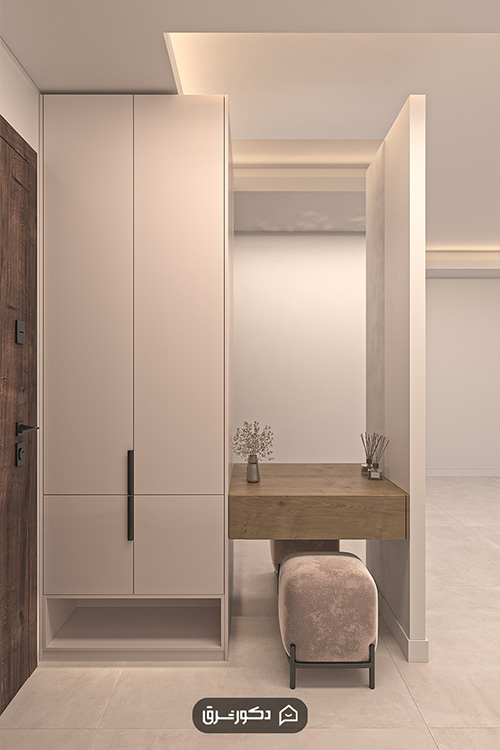 تفکیک فضای ورودی از فضای اصلی منزل با کمد دیواری ورودی