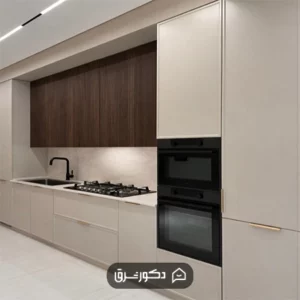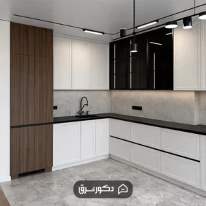نکته: در انتخاب رنگ کابینت باید به پالت رنگی کلی آشپزخانه و سایز اجرای محیط مانند پوشش کف و دیوارها توجه شود. همچنین پیشنهاد می کنیم رنگ های اصلی آشپزخانه با پالت رنگی دکوراسیون منزل نیز هماهنگ باشند تا فضا نمایی یکپارچه و متعادل داشته باشد.