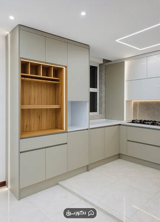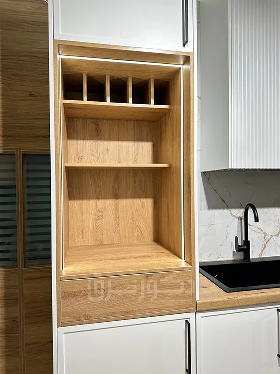 اما اگر جزئیات بیشتر همراه با قاب بندی های ظریف را می پسندید، سبک نئوکلاسیک با نمای مجلل گزینه مناسبی محسوب می شود و نورپردازی در رنگ های گرم و ملایم (مانند نور نچرال)، جلوه این بخش از آشپزخانه را نمایان تر می کند.