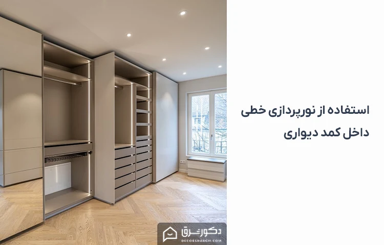 در طراحی کمد دیواری های لوکس و مدرن، از نورهای خطی توکار استفاده می شود. این مدل نورپردازی روشنایی ملایم و یکنواختی ایجاد می کند و در کمد های شیشه فریم لس یا مدل های بدون درب تاثیر بصری بیشتری دارد.