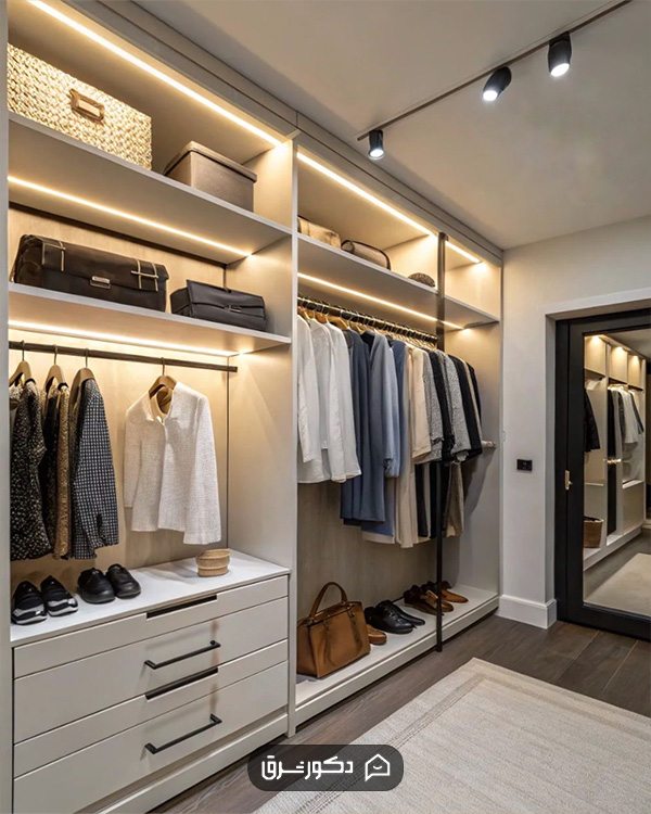 کمد دیواری شیک و لوکس با نورپردازی، فقط فضایی برای نگهداری لوازم نیست بلکه می تواند تاثیر زیادی بر زیبایی و جلوه دکوراسیون محیط داشته باشد.