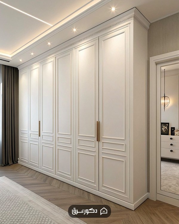 کمد دیواری شیک و لوکس در سبک مدرن با درب های ساده و بدون قاب طراحی می شود و جلوه مینیمالی به فضا می بخشد اما در سبک نئوکلاسیک، درب ها دارای قاب بندی یا شیار هستند که نمای باشکوه و مجلل تری خلق می کنند. انتخاب بین این دو سبک به سلیقه شخصی و سبک دکوراسیون کلی منزل بستگی دارد.