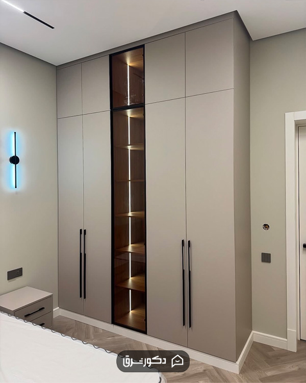 استفاده از درب های شیشه فریم لس دودی در طراحی کمد دیواری با نورپردازی، نمای شیک و لوکس تری به آن می بخشد که در هر دو سبک مدرن و نئوکلاسیک قابل اجراست.