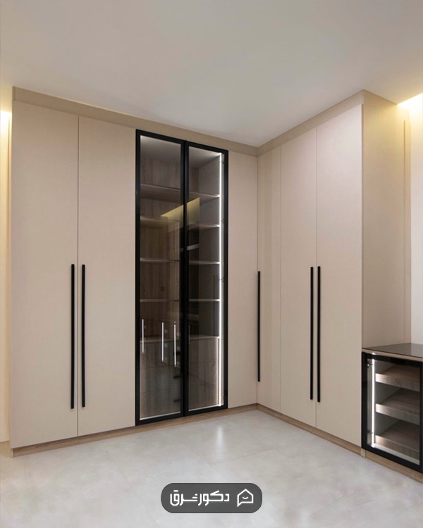 نمای لوکس کمد دیواری استفاده از درب شیشه فریم لس
