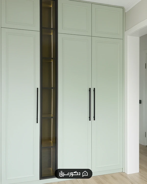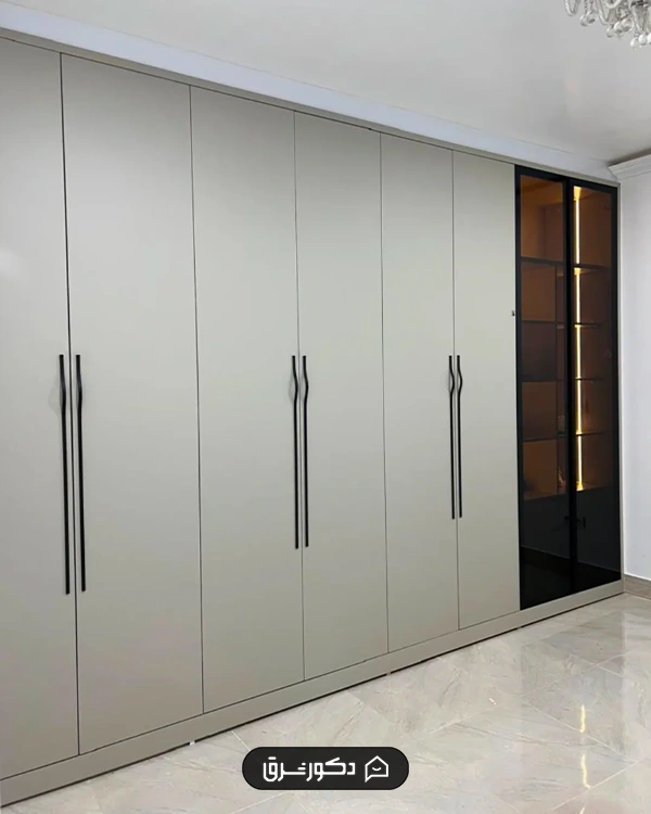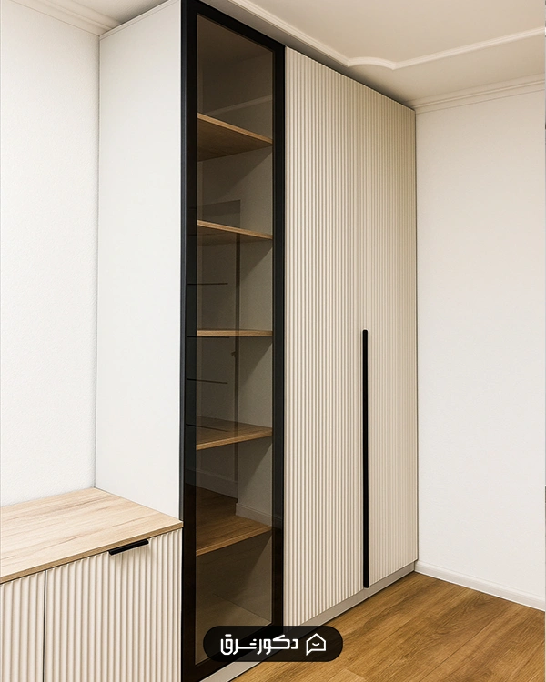 ترکیب کمد دیواری پذیرایی با درب شیشه فریم لس